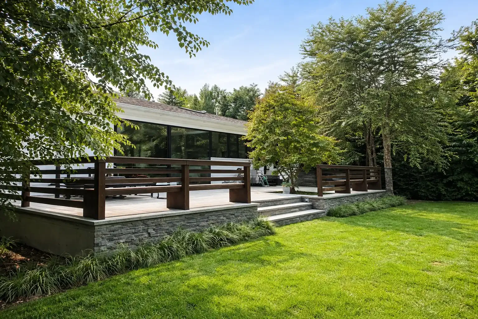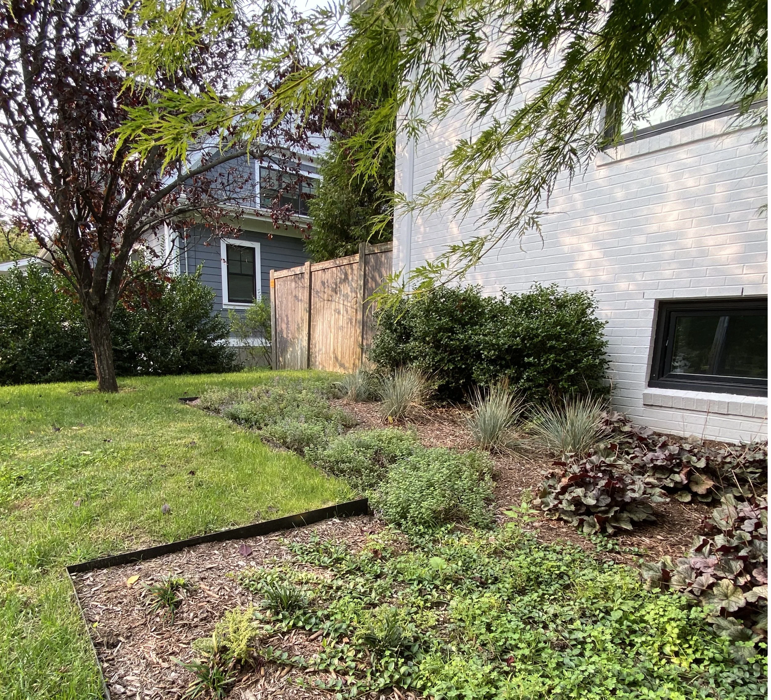 A focus of color and simplicity, the planting utilities ornamental grasses and